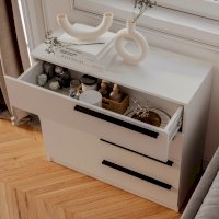 Комод «Айрон» — вместительный комод с четырьмя  вместительными ящиками — универсальное решение, которое подойдёт и для спальни, и для домашнего кабинета, и для гостиной. Эргономичные черные ручки контрастного оттенка делают эту модель более изящной. Комод идеально подходит для хранения белья, одежды, аксессуаров, важных документов, украшений и мелочей. Верхнюю крышку можно использовать как дополнительную полочку для лампы.