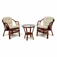 В комплекте: стол со стеклом + 2 кресла + подушки