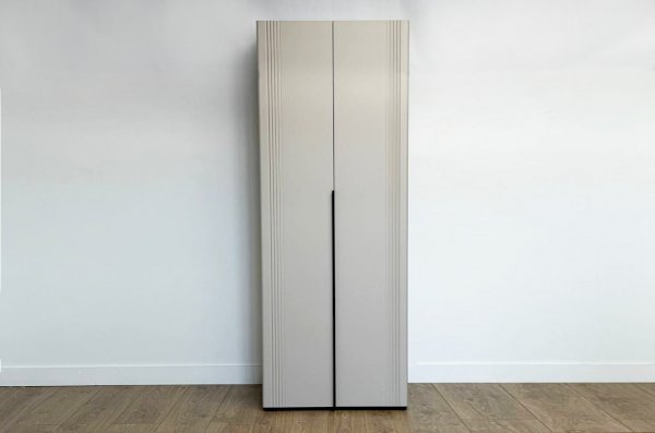Корпус шкафа изготовлен из ЛДСП, что гарантирует прочность и долговечность. Фасад, покрытый МДФ в плёнке ПВХ, не только выглядит эстетично, но и защищает шкаф от повреждений. Особое внимание заслуживает фрезеровка фасадов, которая придаёт шкафу изысканный вид.