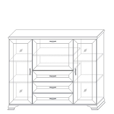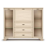Если вам нужно купить недорогой низкий шкаф в гостиную в классическом стиле обратите внимание на данную модель. В его наполнении вам доступно 2 отделения со стеклянными дверками для хранения посуды, книг и различных сувениров. На ваш выбор вы можете докупить четыре стеклополки и модель заиграет новыми красками.