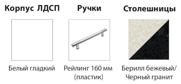 4. Столешница толщиной 26 мм изготавливается из влагостойкой ДСП в цветах: Берилл бежевый или Черный графит на выбор (заказывается отдельно). Глубина 600 мм.