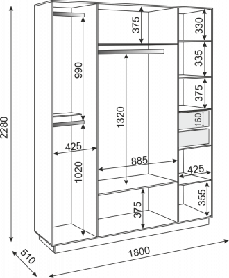 • Размер:(Ш×Г×В): 1800x510x2220 мм