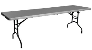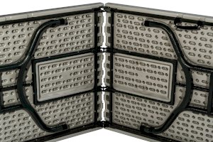 Экземпляр в коллекции эргономичной и комфортной мебели – складной пластиковый стол-книжка 240 см. В сложенном виде модель занимает минимум места, а при необходимости ее можно перевезти в багажнике легкового автомобиля. В собранном состоянии стол обладает внушительными размерами: при длине столешницы в 240 сантиметров за ним с легкостью разместятся как минимум 6 человек. Мебель с такими параметрами рекомендована для крупных выездных мероприятий – в том числе и для тех, где предусмотрен фуршет.