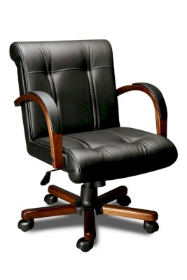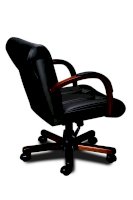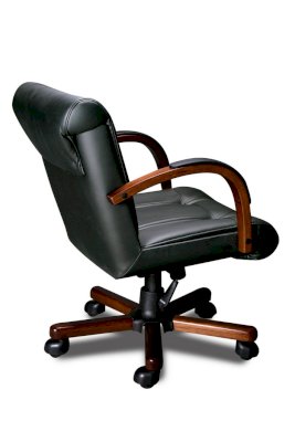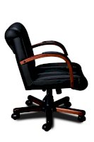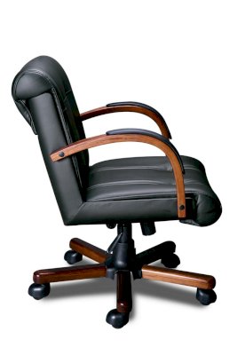 Кресло с низкой спинкой, с подлокотниками дугообразной не замкнутой формы с мягкими накладками обитыми в цвет кресла.