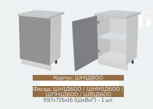 ШВ1Д600 Шкаф верхний с 1 дверью Мрамор глянец