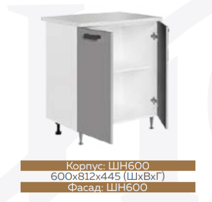 Глубина нижних шкафов без учета столешницы: 444 мм, с учетом столешницы 600 мм