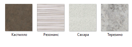 Цвет столешницы (категория Эконом): Кастилло, Резонанс, Сахара, Терезино
