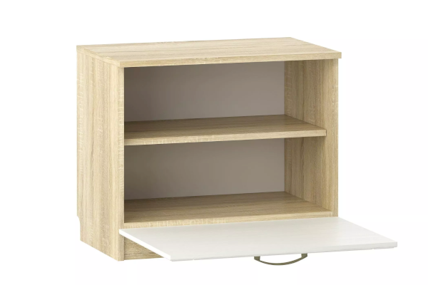 Малогабаритная тумба Оливия НМ 040.47 Х сэкономит свободное место в прихожей. Полка разделяет внутреннее пространство модуля на две равных зоны. Это позволяет упорядоченно хранить обувь в тумбе. Содержимое модуля надежно защищено откидным фасадом.