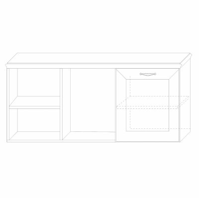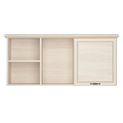 Дизайн модуля соответствует классическому стилю коллекции «Сиена». Корпус изготовлен из светлого ЛДСП «Бодега белый», а в качестве декора применяются профиль МДФ в плёнке ПВХ в цвет корпуса. Золотое патинирование деталей придает мебели роскошный и изысканный вид. Металлическая ручка цвета «старая бронза» украшает дверку.