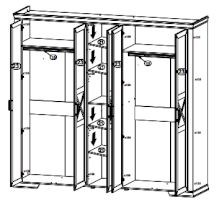 Шкаф разделен на 3 отделения: правое и левое – полка и стационарная штанга для одежды