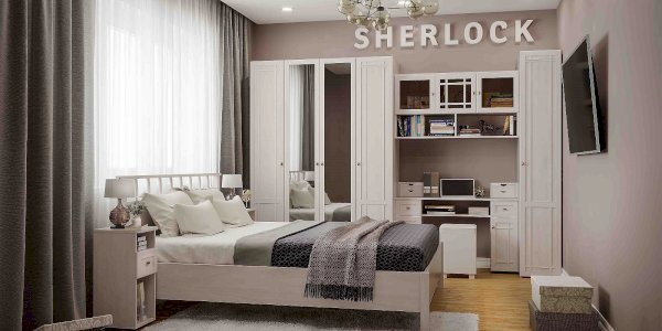 Организация пространства спальни часто упирается в необходимость увеличить проходы между кроватью и другими предметами мебели. Облегчить эту задачу сможет неглубокий (всего 40 см) туалетный столик. Благодаря широкой столешнице за ним можно удобно расположиться, чтобы сделать макияж. Спрячьте в выдвижные ящики разные мелочи, и детские ручки не накрасят помадой обои. За рамочными фасадами просторная ниша с полкой, регулируемой по высоте. Полка под столешницей с фигурным вырезом позволит комфортно сидеть за столиком человеку высокого роста. Сам по себе туалетный стол соответствует по высоте нормам ГОСТ и может использоваться как письменный или для работы с ноутбуком. Зеркало докупается отдельно, можно выбрать любое из имеющихся в коллекции Sherlock вариантов.