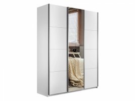Шкаф-купе 3-х дверный Прайм ДСП/Зеркало/ДСП 1800 мм Белый снег