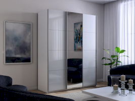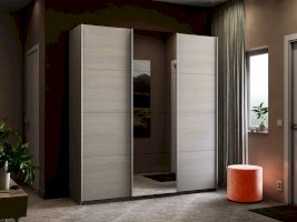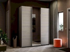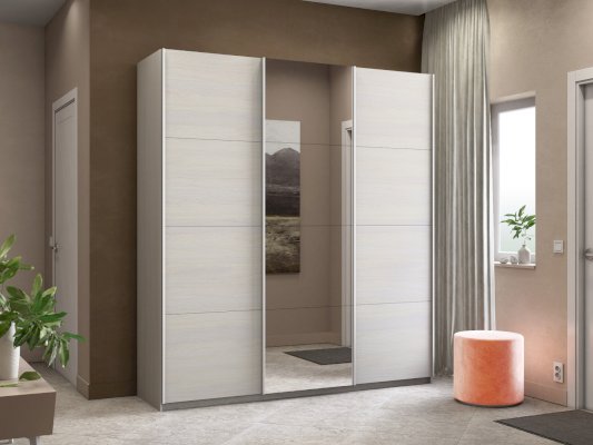 Серия «Прайм» отличается доступностью и функциональностью Навесные двери и лаконичная отделка фасадов создают прогрессивный дизайн. Подойдет тем, кто любит компактную и изящную мебель. Алюминиевые ручки и верхний ходовой профиль обеспечивают легкость и прочность конструкции. Многолетняя безупречная работа благодаря высококачественной немецкой фурнитуре Hettich. Прочная ПВХ-кромка толщиной до 1 мм защищает края от сколов и повреждений. Плавный ход дверей обеспечивает надежная система Hettich Top Line M. Дополнительно можно установить доводчики. Снаружи нет заглушек и винтов благодаря стяжечной системе крепления полок на флипперах, а корпус усилен эксцентриковыми стяжками. Навесные двери скрывают раздвижной механизм от глаз. Они надежно удерживаются в направляющих и не соскакивают. Каждая дверь поделена на 4 секции Секции расставляются в произвольном порядке, создавая новый дизайн фасада.