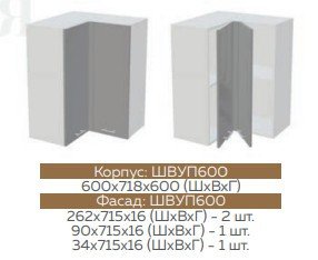 ШВУП600 Шкаф верхний угловой (Белый глянец холодный)