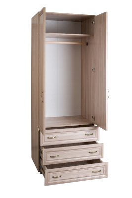Шкаф с вместительными ящиками полного выдвижения на 400 мм. Штанга для полноценного размещения одежды, наверху удобная антресольная полка. Может комплектоваться полками.